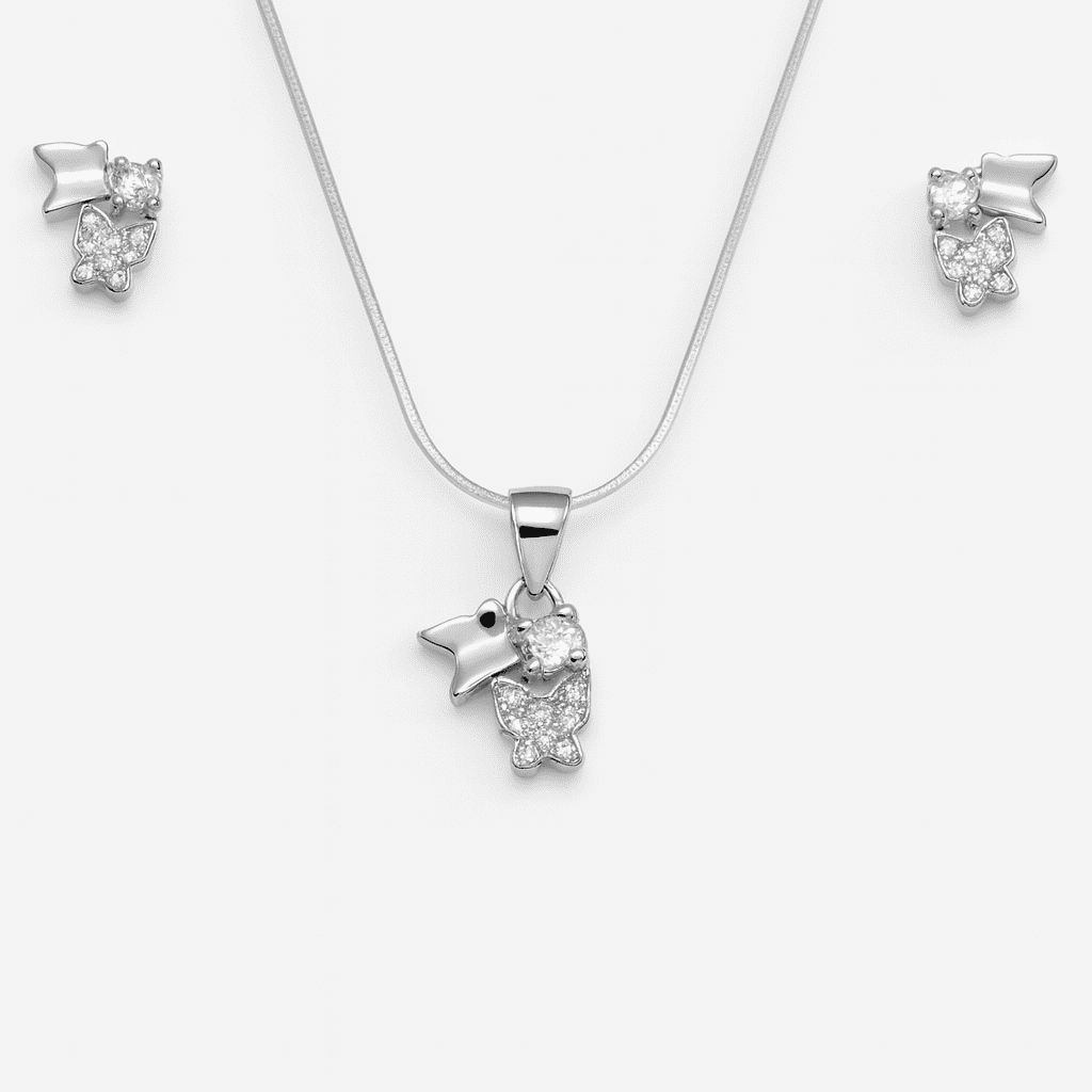 Design: Modern Butterfly Rhodium Plated Pendant and Earring with adjustable chain