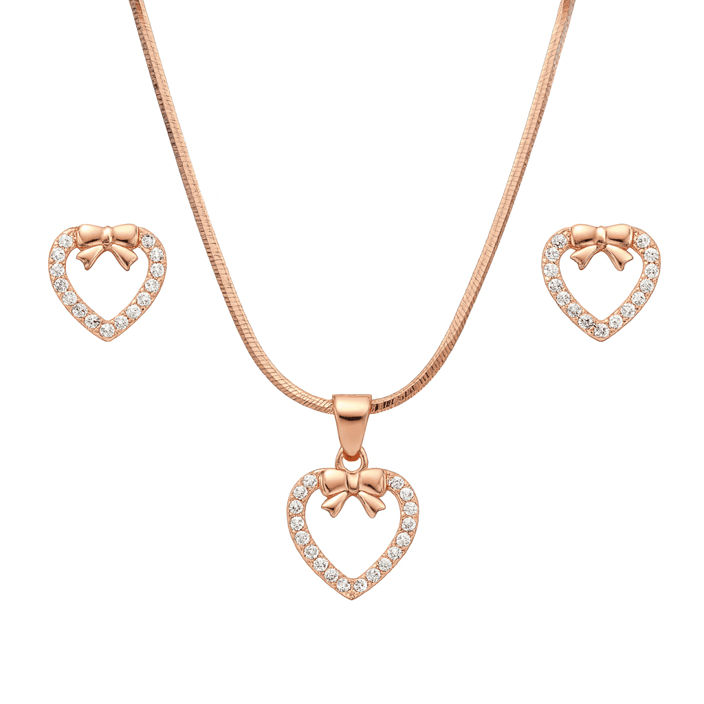 Heart Shape with Bow Rose Gold Plated 925 Sterling Silver Jewelry Pendant Set