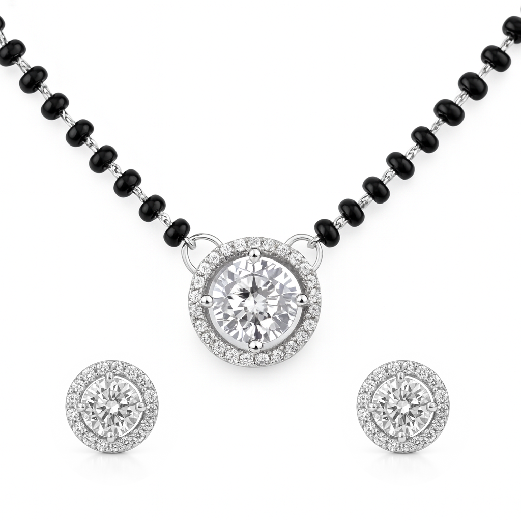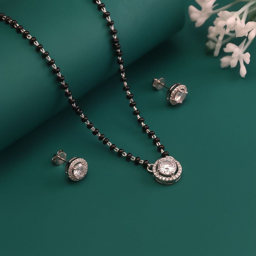 Round Shape Mangalsutra Set 925 Sterling Silver | Rhodium Plated | BIS Hallmarked