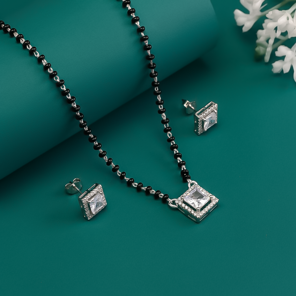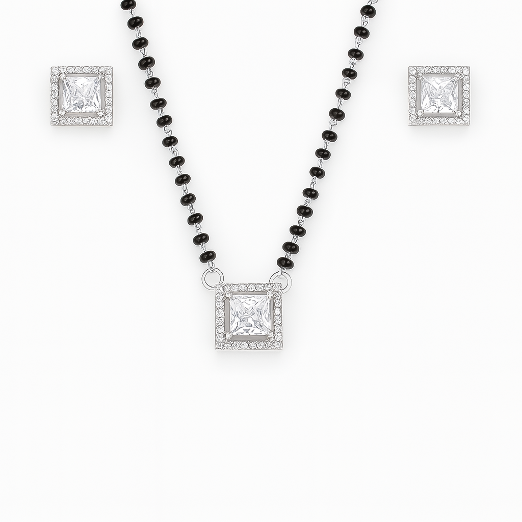 Square Mangalsutra Set 925 Sterling Silver | Rhodium Plated | BIS Hallmarked